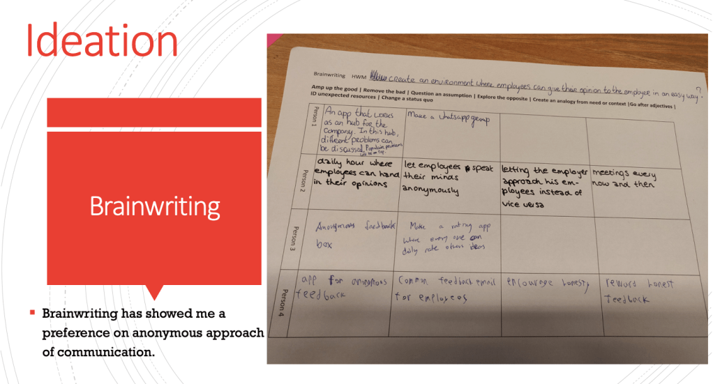 How might we create an environment where employees can give there opinion to the employer in an easy (and quick) way? I tried to find a solution by a Brainwriting session.