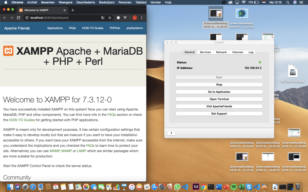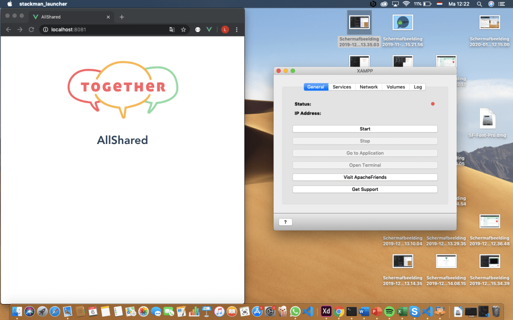 The picture above shows the app when XAMPP is on. This page can be altered to make it a login screen to my liking. Now it shows a default page where all the programming steps are explained.