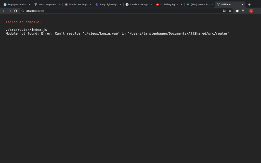 To create the login page the Youtuber descripes I needed to install Sass within my Vue Project. For this I inquired the youtube video below.