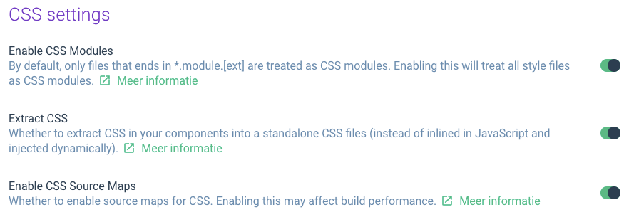 To create the right settings I needed to changes certain things after the instalment, otherwise it didn’t accept the sass styling that was used. The settings are displayed below.